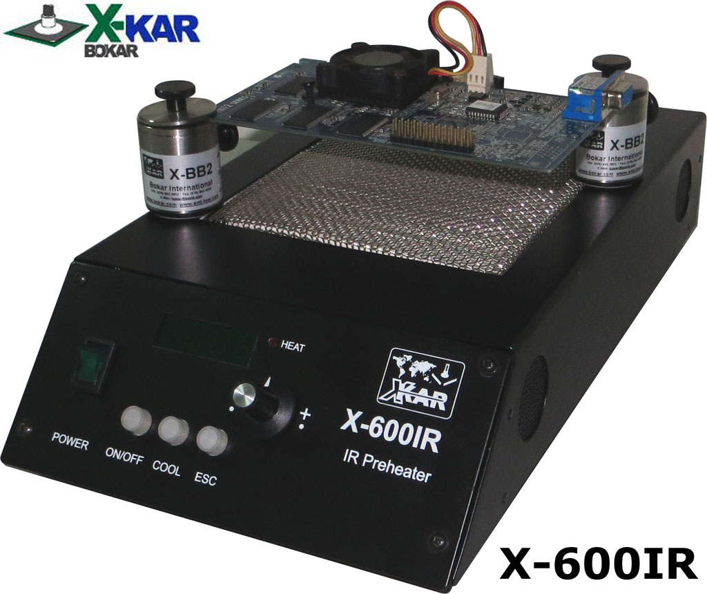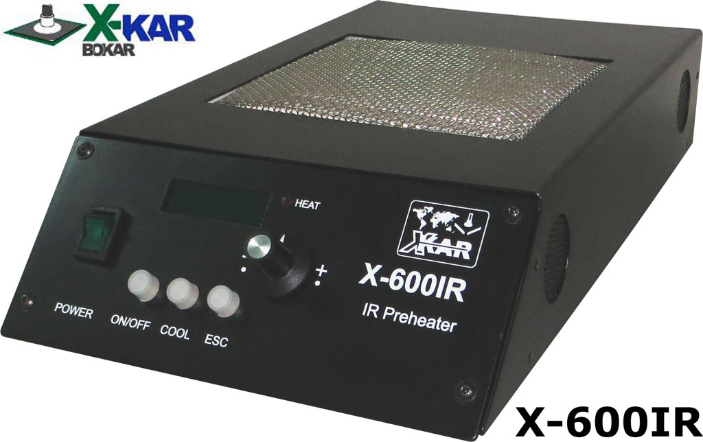 The X-600IR PCB pre-heater has user adjustable off-set to pre-set reasonably accurate preheat temperature for reworked PCB. It was designed to reduce the workspace required for SMT Rework and Repair. This design emphasizes on the appropriate process control for Rework and Repair. Pre-heater Unit is microprocessor controlled to maintain accuracy and to extend heating element life.