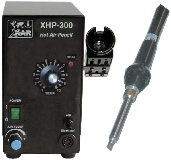 Designed to outperform hot air pencils presently available from other supplies. XHP-300 has PID control of the heater and maintains steady temperature with high accuracy. It features a standby mode to speed-up time to readiness.