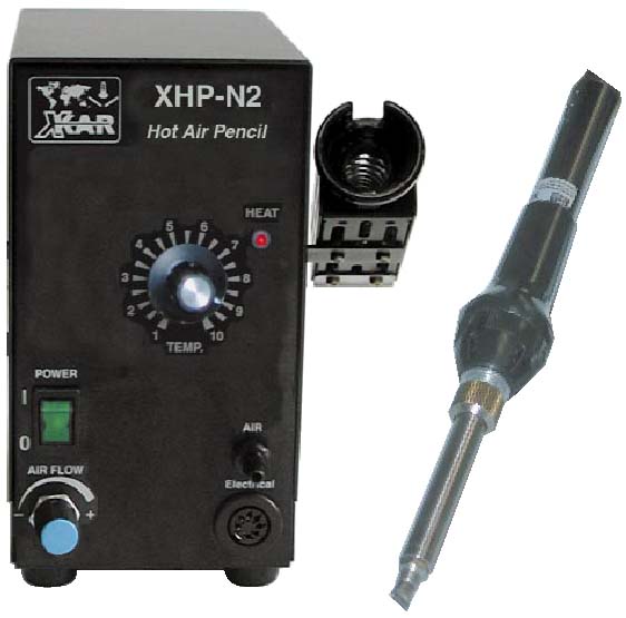 Designed to outperform hot air pencils presently available from other supplies. XHP-N2 has PID control of the heater and maintains steady temperature with high accuracy. It features a standby mode to speed-up time to readiness.