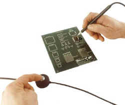 | Release of vacuum by opening hole will cause the movement of part "P". By pressing XVR-01 a part is released without any side movement. For use with vacuum sources: XVP-100, SMT-ServiCE, XVB-1 and XMP-300 series. | |